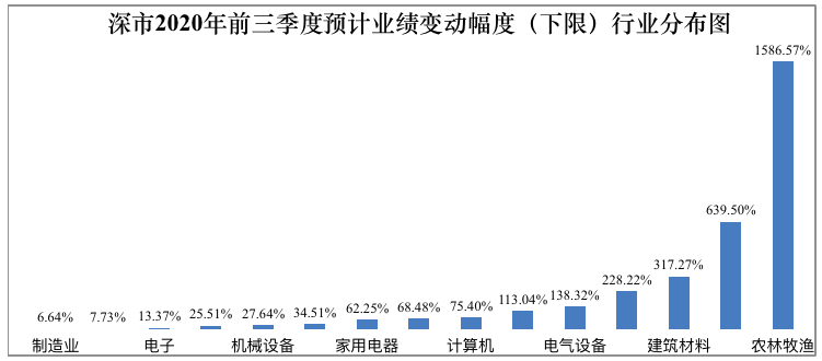 从行业来看,前三季度,农林牧渔、国防军工、建筑材料、化工、电气设备、食品饮料等15个行业上市公司受惠于行业政策和人民消费习惯变化,预计同比保持增长态势。