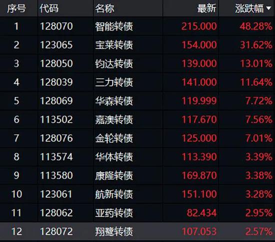 从收盘看,仅有四只转债涨幅超越10%,炒作品种悉数回落,智能转债涨幅收敛至48%。