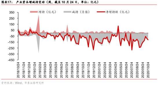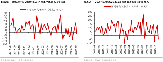 上周北向资金净流出140亿,连续7日净流出;上周新成立股票+偏股型基金361亿份,处于年内偏高位水平;上周融资净买入54亿,两融成交占比8.6%,均环比下滑明显;上周产业资本净减持113亿,减持规模环比扩大。海外疫情(美国日增病例创新高)、争议大选(拜登民调优势从10%降至8%)、财政悬崖(财政纾困难产)三大风险短期或继续导致外资波动,而高位AH溢价亦制约外资流入幅度;据Bloomberg,蚂蚁集团计划融资350亿美元,对应逾200亿人民币A股打新规模,短期资金面不算宽裕。