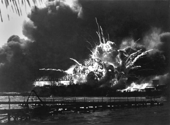 1941年12月7日,日军偷袭珍珠港停泊的美国军舰(来源:britannica.com)