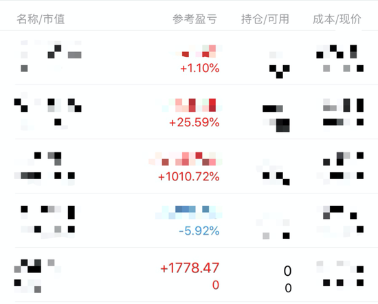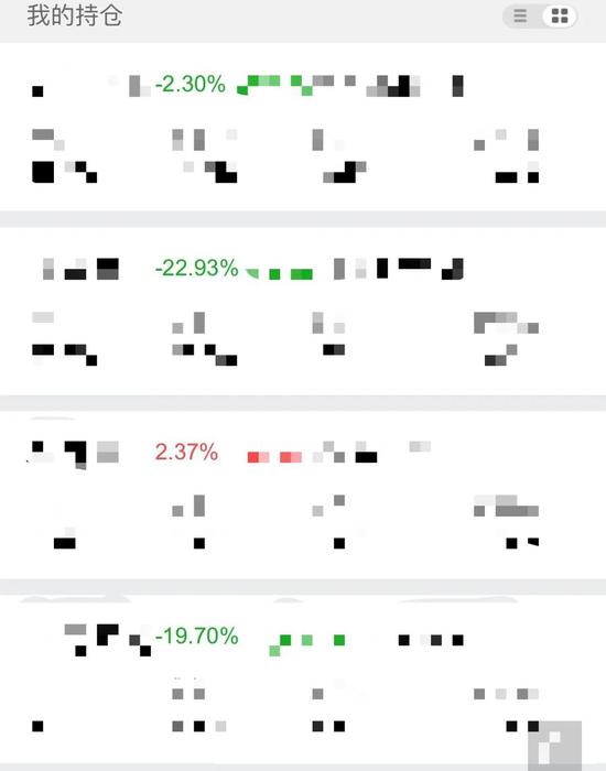 目前,蒋先生持有的四只股票,仅有一只处于盈利状态,并且盈利幅度不高。另外三只股票均处于亏损状态,其中一只亏损幅度超过20%,一只亏损幅度接近20%。蒋先生介绍,这只是近期的持股情况,“之前割了的就不说了,买了亏,亏了割,割了买,买了又亏,简直是一个无限循环的魔咒。”