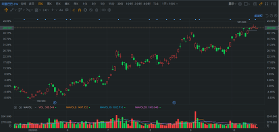 再对比同为科技概念股,二次归港上市的京东(09618.HK),当时也被认为价格高、涨幅小,如今市场也给出了正向反馈。股价从226港元"股上涨39%至如今314.2港元|股,最高时为337.2港元|股。