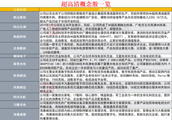 银河证券认为,目前4K超高清智能终端正处于全民普及阶段,电视产量及销量都持续走高,8K超高清产业也将由于5G的加速发展被持续推动;政策方面,超高清视频产业不断出台支持政策及发展战略;内容方面,超高清视频生产需要内容生产方对设备进行全面的升级换代,制作成本较高,行业上游制作意愿较低,超高清内容匮乏是目前行业发展的限制,同时也是未来市场竞争的核心。