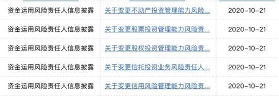 近日,中荷人寿一连发布5个资金运用风险责任人的变更公告,其中包括不动产投资管理能力风险责任人、股票投资管理能力风险责任人、股权投资管理能力风险责任人、信托投资业务风险责任人、信用风险管理能力风险责任人。