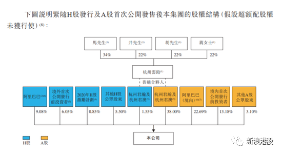 上市后,杭州君瀚持股稀释为23.37%,杭州君澳稀释为16.17%,阿里巴巴持股为96.52亿股,稀释为31.77%(阿里巴巴持股包括77.63亿股A股,11.58亿股外资股,7.3亿股战略认购股份),届时马云控制权将稀释为39.55%,依然对公司拥有绝对控制权。