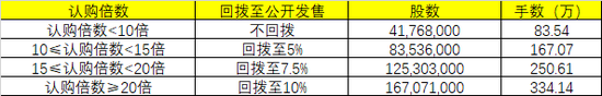 若公开发售认购倍数达到10倍及以上,则触发回拨机制,发售股份将从国际配售重新分配至香港公开发售。当认购倍数达到20倍及以上,香港公开发售股份总数将增至约1.67亿股,占H股总发售股数的10%(于H股超额配股权获行使前)。