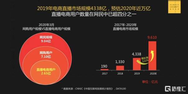 “2020年直播电商整体规模将达到10500亿元,在整个电商市场的渗透率将提升逾四个百分点至8.6%,预计在2021年将分别达到2.0万亿元、14.3%。”——公开数据