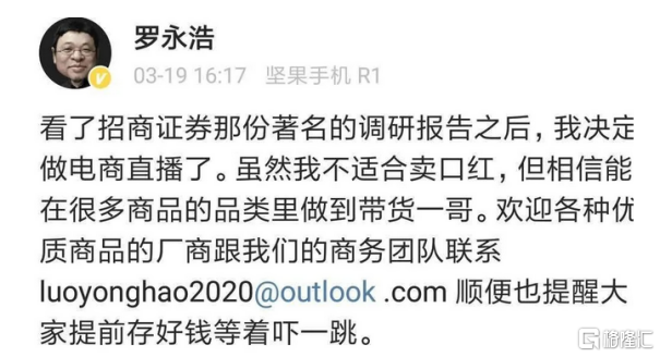 显然,有风口就会有无数人纷纷投身于其中,其中自然也就少不了老罗去凑热闹。