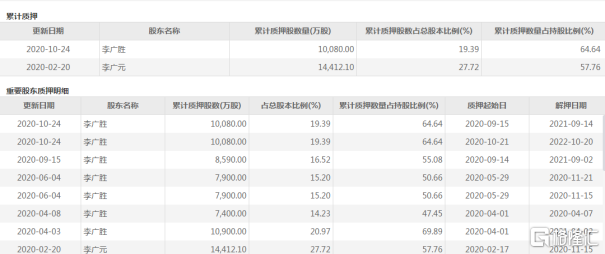 同时,尚纬股份存在较高比例的股份质押。截止到目前,公司控股股东、实际控制人李广胜持有公司股份累计质押数量为10080万股,占其所持有公司股份总数的64.64%,占公司总股本的19.39%。