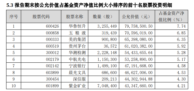 如上图所示,该资管产品前十大重仓股占比达到了54.93%。华鲁恒升、五粮液、美的集团、贵州茅台、华测检测和中航光电全部进入了超配的行列。相比二季度末,该基金的前十大重仓股更换了一半,新进华鲁恒升、五粮液、美的集团、深信服和宁波银行五只新面孔,小幅增持紫金矿业、贵州茅台和中航光电,小幅减持华测检测。
