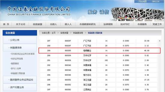 恒顺醋业控股股东的证券出借,在证金公司发布的转融通数据中得到体现。
