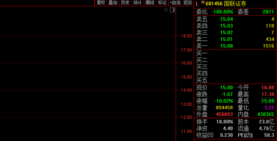 国联证券今日破位下跌,股价跌停。
