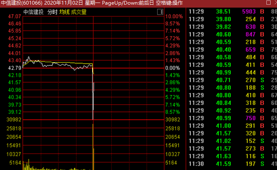 另外,知名的券商中金公司今日上市交易,前半个小时封死主板新股首日的44%涨停,但10点突然大量抛单涌现,砸开涨停板。