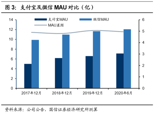 第一,我们认为,支付业务在蚂蚁和腾讯内的定位存在显著差别:支付是蚂蚁集团重要的流量入口,对企业整体而言,市场份额的重要性远胜于盈利能力;而微信本身是一座流量富矿,微信支付格局更好,具备盈利能力。