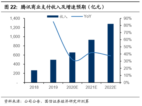 微信支付有望创造更多的利润。短期内,腾讯在线上电商场景的份额有望持续扩大,在线下更大的支付场景中,其优势更加显著,定价权更高,支付业务有望持续创造利润。未来3年,商业支付收入复合增速有望超过35%。