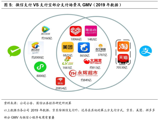 线上:逐场景而生,短期内腾讯系份额可能会有所增长。目前,腾讯系小程序电商GMV在快速增长,腾讯系企业美团、京东、拼多多GMV也在快速增长,短期内腾讯在线上支付的份额有望扩大,且费率有提升的空间。