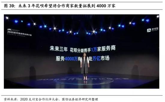 花呗分期预计未来3年接入商户数量翻倍。蚂蚁集团金融事业群总经理邵文澜称,2019年花呗已有2000万商户使用,其中500万商户做过贴息营销,促使店铺的销售额提升了15%以上,而花呗的服务商数量在1年内增长了近4倍。未来3年,花呗分期希望拓展4000万商户。
