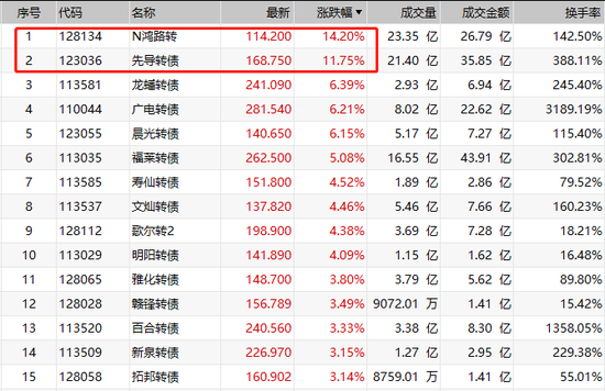 与此同时,转债跌幅榜却显得分外刺眼。临近尾盘,溢价可转债纷纷加速下跌。