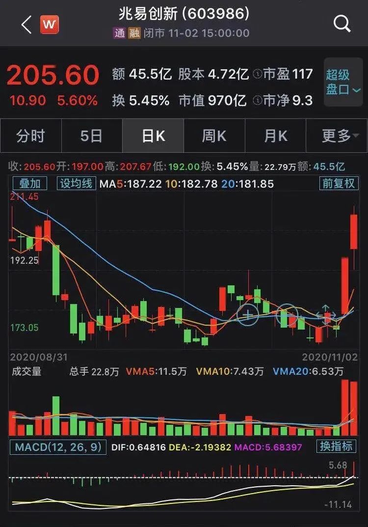 有几只个股的走势值得关注,首先是兆易创新。自7月中旬以来,该股最大跌幅近40%,而在上周五放量涨停,今日上涨5.6%,两日累计上涨16.16%,目前总市值为970亿元。