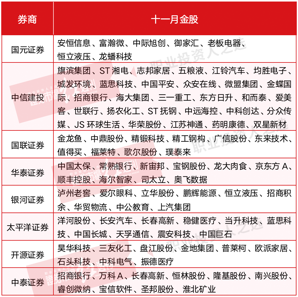 表1 券商十一月金股池(部分)