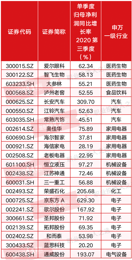 以及三季度业绩改善明显的绩优股
