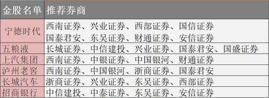 其中,宁德时代被8家券商同时“相中”,成为11月份金股中最受宠爱;五粮液被5家券商联合推荐,招商银行、泸州老窖、长城汽车、上汽集团均被4家券商联合推荐,中国平安、长春高新、兴业银行、旗滨集团、芒果超媒、老板电器、分众传媒均被3家券商联合推荐。