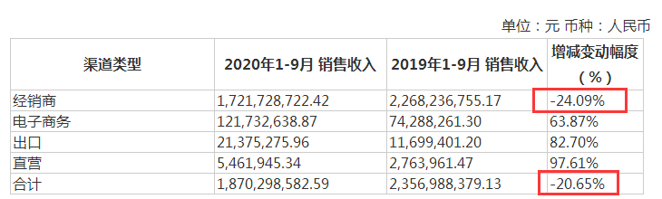 以今年前三季度为例,即便香飘飘通过电子商务、出口、直营等渠道实现了更多销售收入,但由于经销商渠道的销售收入下滑,香飘飘今年前三季度的合计销售收入仍下滑20.73%。