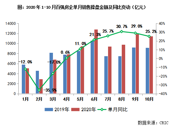 不过,亿翰智库认为,10月百强房企销售同比强了不少,但是环比有一部分企业出现了下降,这是比较正常的情况。