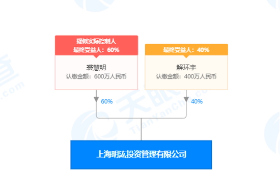 据天眼查,上海明汯投资管理有限公司成立于2014年,是国内百亿量化私募,旗下共有358只产品,疑似实际控制人为裘慧明,目前由裘慧明和解环宇分别持股60%与40%。