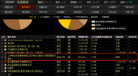 此外,近期热门的创业板股的十大流动股东中也经常出现这家私募机构的身影,如优德精密、因赛集团、海川智能、胜蓝股份等等。