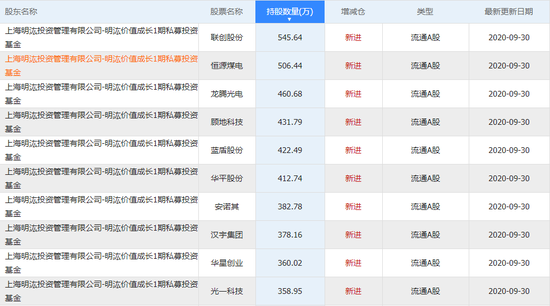 值得一提的是,该公司三季度新进个股众多,据一点仓位网,以下为该私募持仓数量前十名个股名单。其中包括联创股份、恒源煤电、龙腾光电、顾地科技、蓝盾股份等个股。
