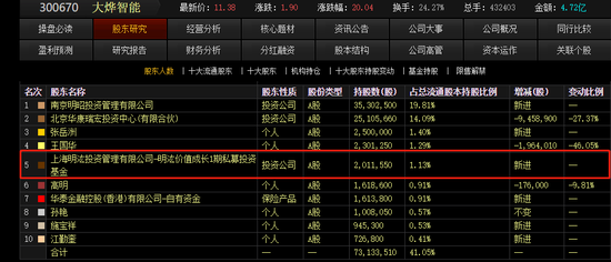 查询该股三季报十大流通股东发现,上海明汯投资管理有限公司也位列其中,该公司三季度新进88.45万股,虽持股不多,但若以9月30日收盘价13.47元/股计算,时至今日也已盈利逾1435万。