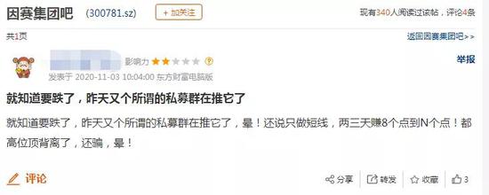此外,《每日经济新闻》记者还在东方财富网股吧中注意到,今日因赛集团的股价大跌,似乎又是一起“杀猪盘”事件。