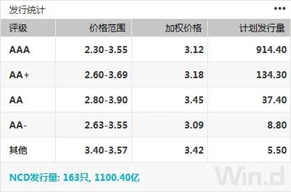 从发债类型看,11月3日,债券市场共发行同业存单163只,金融债8只,公司债15只,中期票据18只,短期融资券10只,定向工具3只,资产支持证券9只,可转债2只。