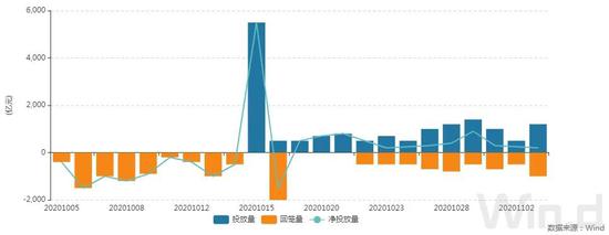 央行公告称,为维护银行体系流动性合理充裕,11月3日以利率招标方式开展了1200亿元7天期逆回购操作,中标利率2.20%。Wind数据显示,当日1000亿元逆回购到期,净投放200亿元。
