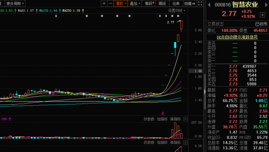 个股方面,智慧农业缩量秒板,从江铃汽车的反包开始,非创业板个股的短线情绪在不断回暖中。锐奇股份、济南高新、光正眼科均2连板,但是海川智能、胜蓝股份、友讯达、优德精密这几个短线连板股纷纷跌逾10%。整体来看,市场分化较大,创业板连板股的分时低吸资金力量在减弱。