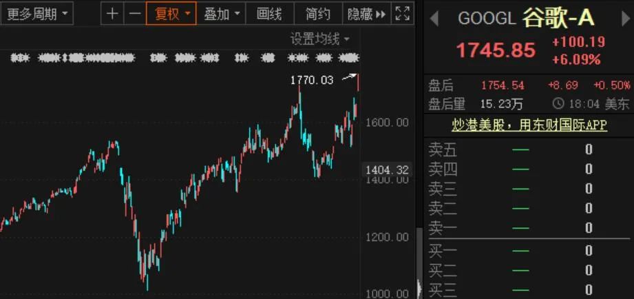 科技股成为大涨主力,谷歌涨超6%,创历史新高;苹果涨超4%,Facebook涨超8%,亚马逊涨超6%。