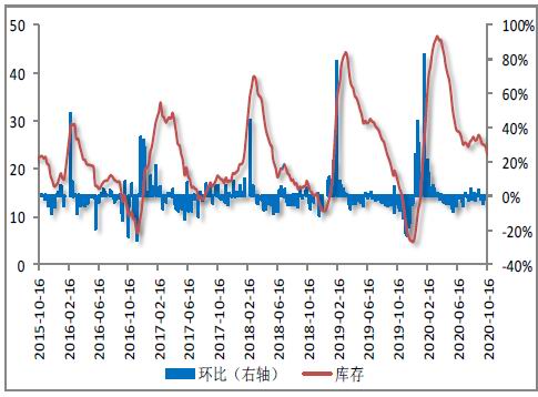 国际原油期货价格震荡下行,美布两油均价较上周均有所上涨。周内前期利比亚原油供应增加,欧洲出台新的封锁措施以遏制冠状病毒感染病例激增态势,油价承压下行。市场担忧全球冠状病毒感染病例激增将促使各国实行新的经济封锁措施,从而导致能源需求下降,美国库存数据显示,随着全球感染新冠病毒人数激增,燃料的需求走疲,令油价承压。另一方面,憧憬美国达成财政刺激预期,美国国内原油库存下降的预期使油价得到支撑。OPEC在委员会会议上承诺产油国严格遵守减产协议,对油价起到一定程度的提振作用。期间美元持续走低也在一定程度上提振油价。EIA报告称,美国原油库存继续下降,但是降幅没有达到预期,国际油价适度反弹。中国原油进口推动原油需求的趋势减弱,油价涨幅受限。