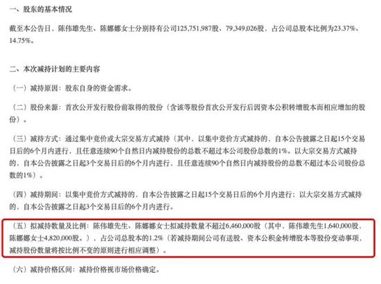 10月26日晚,柏堡龙公告称,公司于2020年10月26日收到公司控股股东及实际控制人陈伟雄、陈娜娜的发来的《关于减持股份的告知函》。陈伟雄、陈娜娜拟减持数量不超过646万股(其中,陈伟雄164万股,陈娜娜482万股),占公司总股本的1.2%。截至本公告日,陈伟雄、陈娜娜分别持有公司1.26亿股、7934.90万股,占公司总股本比例为23.37%、14.75%。