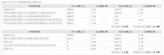 11月4日的情况更明显,卖出前5席位均为机构专用,其中卖一至卖三均卖出超亿元。拉长交易日来看,11月2日至4日的3个交易日资金依旧呈现净流出,卖出前五席位合计达4.66亿元。