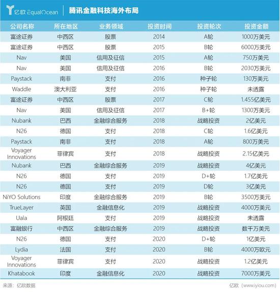 在国内金融科技业务布局初具规模的同时,腾讯早在2014年起就开始把眼光投向海外,在全球范围内,搜寻金融科技领域优秀的标的。