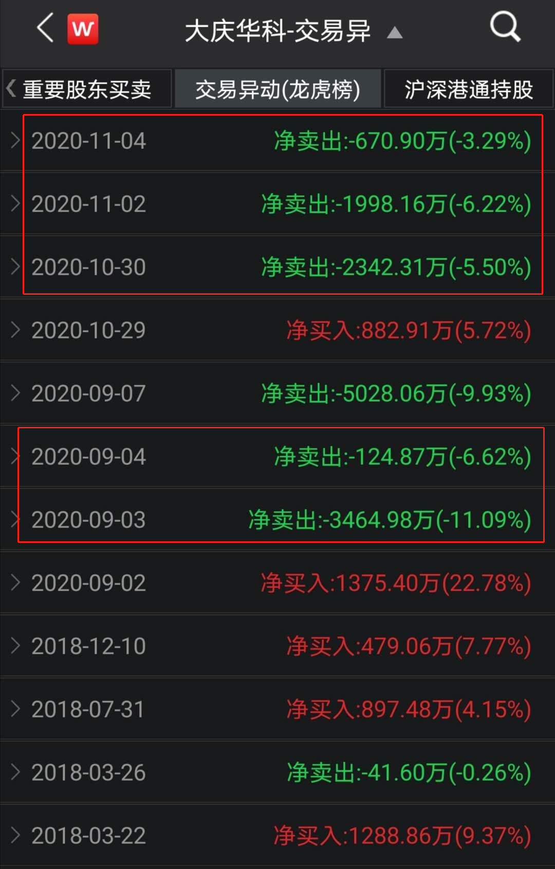 11月3日,大庆华科报于21.45元,跌幅为2.05%;11月4日,大庆华科收盘时的跌幅达到9%;11月5日,大庆华科盘中一度触及跌停,又迅速反转,截至收盘拉升上涨2.6%。