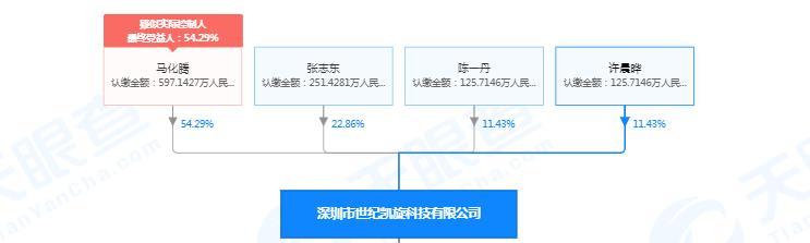 其中,深圳市世纪凯旋科技有限公司为马化腾、张志东、陈一丹、许晨晔共同出资成立,其中,马化腾出资597.142.万元,持股比例为54.29%,为公司实际控制人。