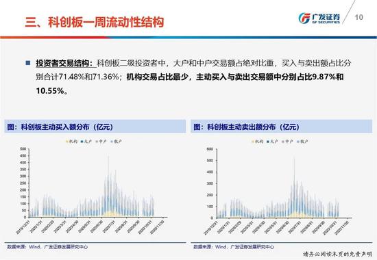 一周流动性结构:(1)本周科创板净买入9.09亿元,机构主动净卖出3.55亿元;(2)机构本周主动买入与卖出交易额中分别占比9.87%和10.55%;(3)本周四融券余额为113.51亿元,相较上周五上升5.80%,融券/融资余额比为0.36。