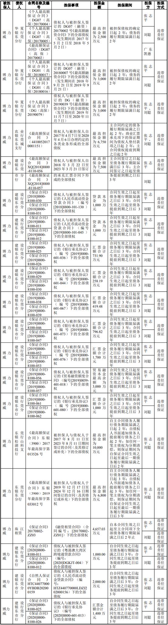 招股书显示,博力威关联方频繁为公司提供担保共计20项,担保金额最高为1.00亿元,最低为258.19万元。