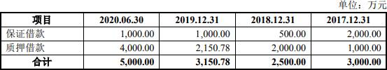 2017年至2020年1-6月,博力威短期借款中保证借款分别为2000.00万元、500.00万元、1000.00万元、1000.00万元,质押借款分别为1000.00万元、2000.00万元、2150.78万元、4000.00万元。