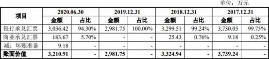 2017年至2020年1-6月,博力威应收票据中银行承兑汇票分别为3730.05万元、3299.51万元、2981.75万元、3036.42万元。