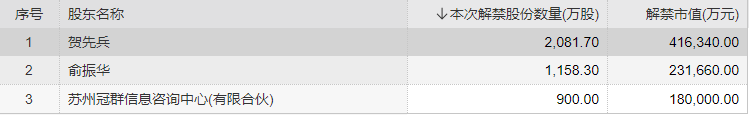 此次八方股份解禁涉及的股东包括三位,分别是自然人股东贺先兵和俞振华,法人股东苏州冠群信息咨询中心(有限合伙)。截至记者发稿时,公司暂未披露解禁公告,具体解禁日以公告为准。解禁后其股价将面临一定压力,不过行业需求向好的大趋势不变。