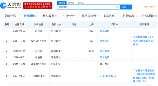 从天眼查APP的公开信息可以看到,永辉从2007年开始,通过战略融资、IPO、定向增发和股权转让的多种形式,引入了6轮外部资本,进行全国化扩张和业态创新。