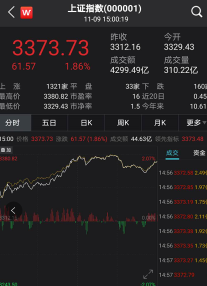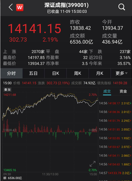 上证指数一度涨破2%,最终收涨1.86%。深证成指涨超2%,创业板指涨近3%,收复2800点。